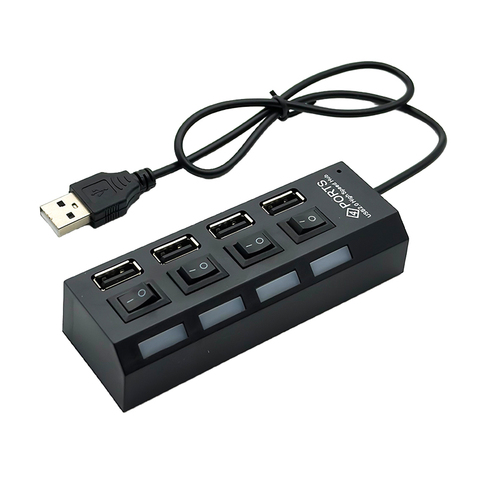 USB2.0 de alta velocidad 4 puertos Hub DC5V adaptador 480Mbps Multi HUB Splitter con interruptor de expansión para PC de escritorio portátil