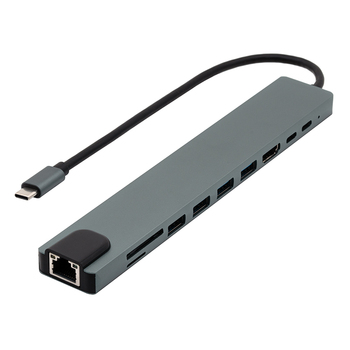 8 en 1 USB3.0 Tipo-C Hub 4K HDTV SD TF PD Cargador de entrega de energía Video USB C 100M Estación de acoplamiento Ethernet para computadora portátil